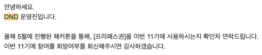 저번 해커톤에서 합이 잘 맞았던 동료에게 다시한번 추파를 던져 보았습니다.