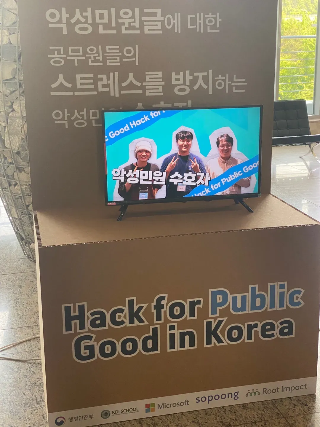 수상한 것도 너무 좋았지만 다른 해커톤과 다르게 심사의원분들이 모든 것을 정하지 않고, 실제 잠재 사용자 ( 약 400명 )에게 현장에서 투표를 받고 진행되어 공공부문에 실제로 도움이 될 것 같다는 것을 인정받으니까 가슴이 뜨거워지는 경험…을 했습니다.